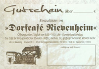 Verschenken Sie einen Gutschein für unser Dorfcafé z. B. zum Geburtstag, Namenstag oder ganz einfach so. In unserem Café kann die oder der Beschenkte dann ausgiebig frühstücken oder es sich bei Kaffee, Kuchen, Eis, gepflegten Getränken oder einem kleinen Imbiss gemütlich machen.